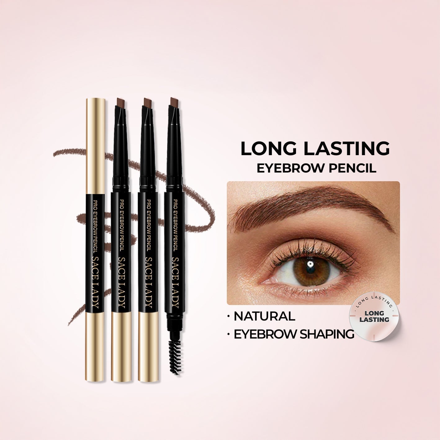 احصلي على حواجب مثالية ومحددة بشكل طبيعي مع قلم الحواجب المقاوم للماء من SACE LADY ! مصمم بدقة فائقة، يتميز هذا القلم ذو الطرفين بطرف مثلث لسهولة التشكيل والملء، بالإضافة إلى فرشاة ملفوفة مدمجة لمزج سلس.
