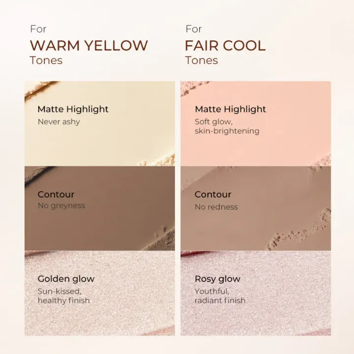 This duo contouring palette is formulated with carefully selected cosmetic ingredients to provide smooth application, easy blending, and natural-looking definition. Full ingredients are listed on the product packaging.