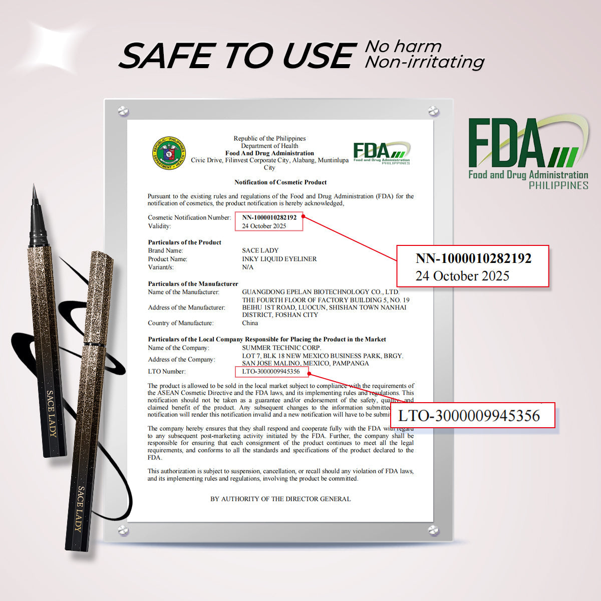 Achieve bold, defined eyes with the SACE LADY SL-349 Inky Black Eyeliner. This liquid eyeliner features a smooth, fast-drying formula that delivers intense, jet-black color that lasts for up to 24 hours. With its waterproof, smudge-proof, and long-lasting properties, this eyeliner will stay put through sweat, humidity, and everything in between. The hexagonal grip design ensures comfort and control for precise application, while the easy-glide formula prevents feathering and smudging, giving you flawless eyes all day and night.
