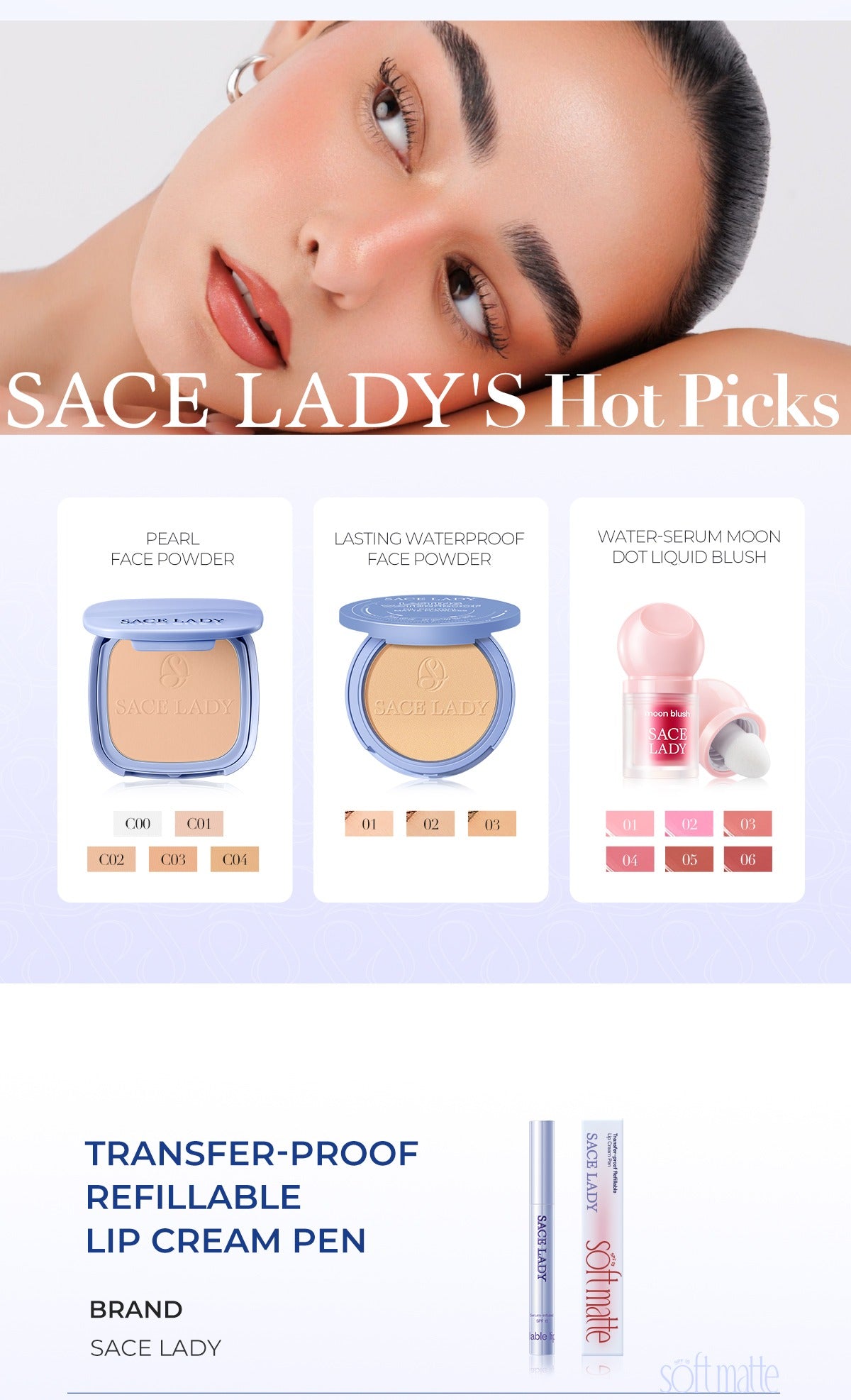 SACE LADY Transfer-Proof Refillable Lip Cream Pen is designed to deliver smooth, soft-matte lip color with added SPF15 for daily wear. The lightweight formula glides easily onto the lips and sets comfortably, helping to reduce transfer while maintaining a soft feel. The refillable twist-up pen design allows easy shade replacement and precise application, making it suitable for everyday use.
